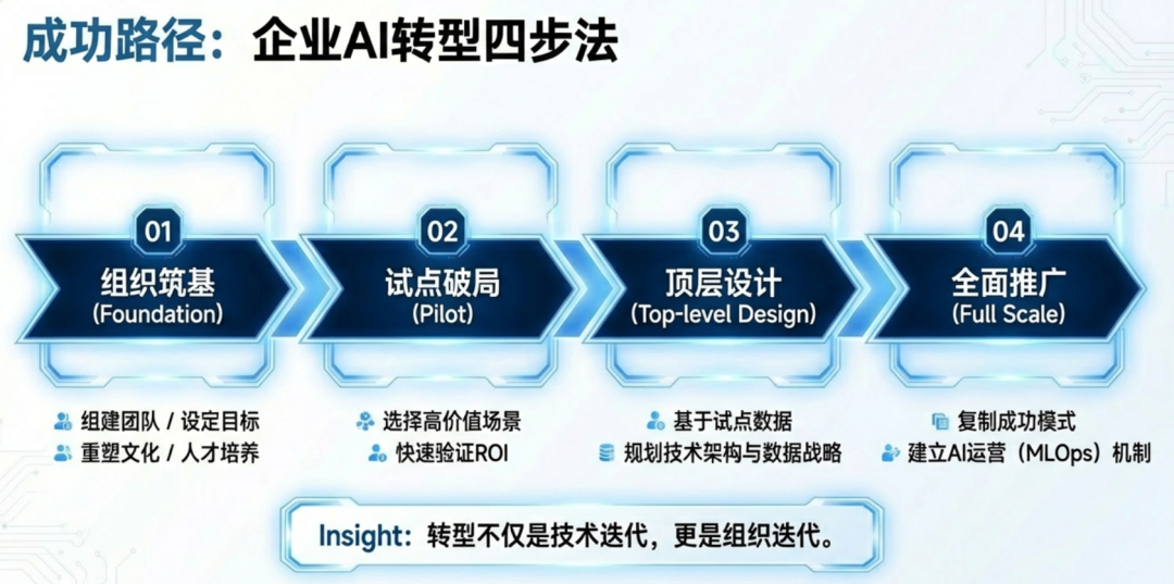 此外,明确目标与评估标准、确保投资回报率(ROI)也是企业AI转型不可忽视的环节。