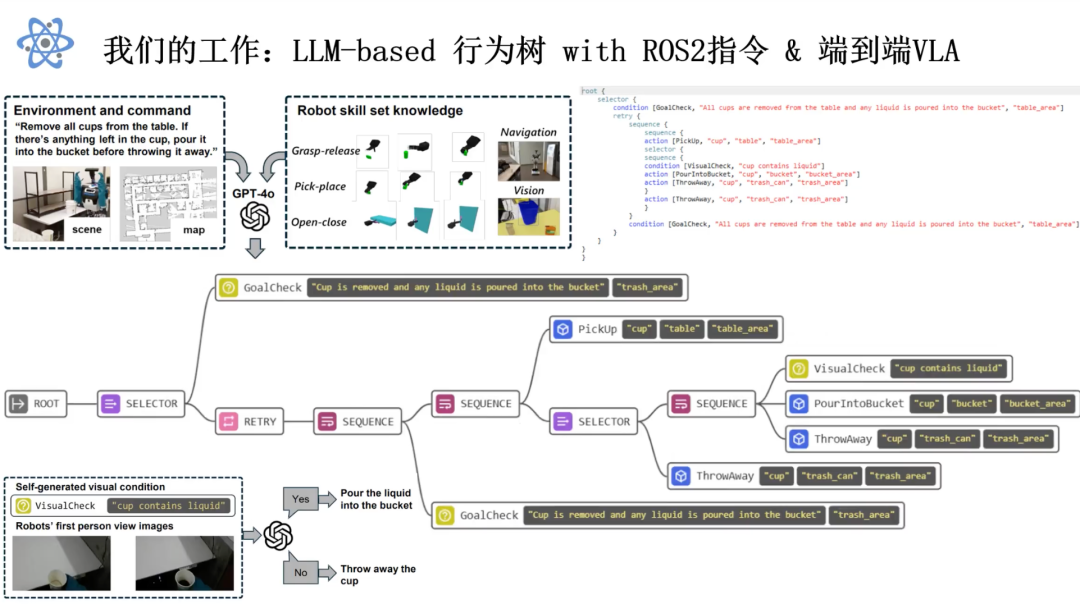 验证与执行:代码先在仿真环境验证效果,反馈修正后再在现实环境执行;进阶的 VLM(视觉语言模型)还能结合视觉信息、空间几何数据,规划运动轨迹并规避禁忌区域,实现更精准的操作。